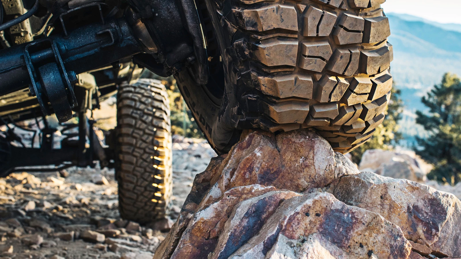 BFGoodrich Mud-Terrain T/A KM3 -maastorengas tarjoaa aggressiivisen vetotehon mudassa[1] ja kalliolla[2]. Kiipeä ja valloita vaikein maasto.